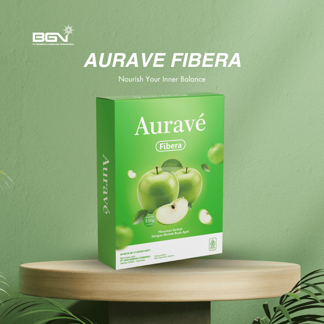 AURAVE Fibera adalah minuman serbuk praktis dengan ekstrak buah apel yang kaya serat dan nutrisi alami untuk mendukung kesehatan pencernaan dan gaya hidup sehat. Diformulasikan dengan serat larut berkualitas, kombinasi ekstrak buah dan sayuran, serta vitamin dan antioksidan, AURAVE Fibera membantu melancarkan pencernaan, mencegah sembelit, mendukung program diet, serta menjaga kesehatan usus dan kadar gula darah